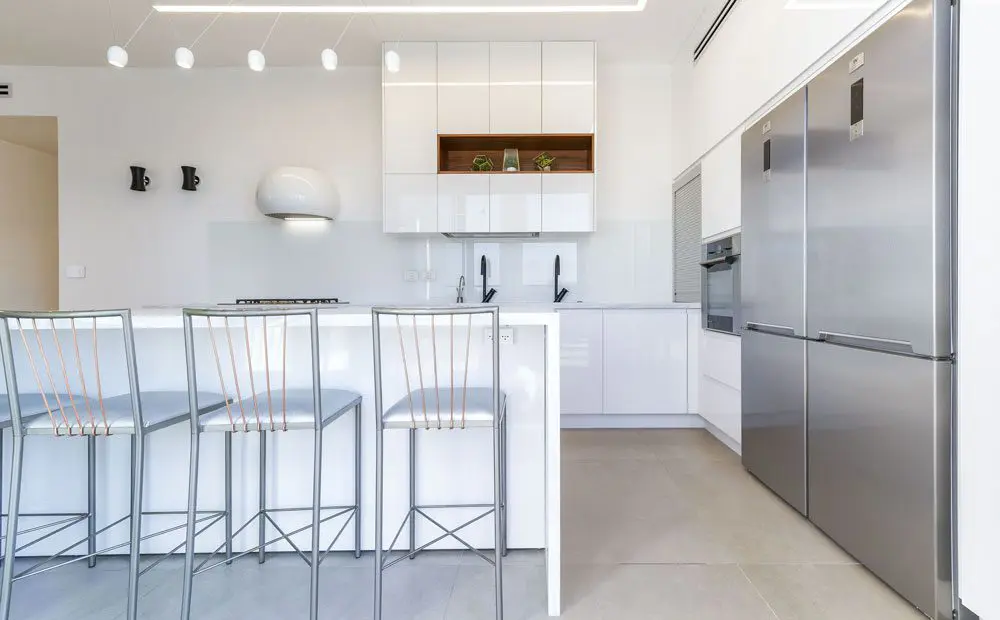 מטבח מעוצב בגוון לבן בהזמנה אישית המותאם לצרכי המשפחה