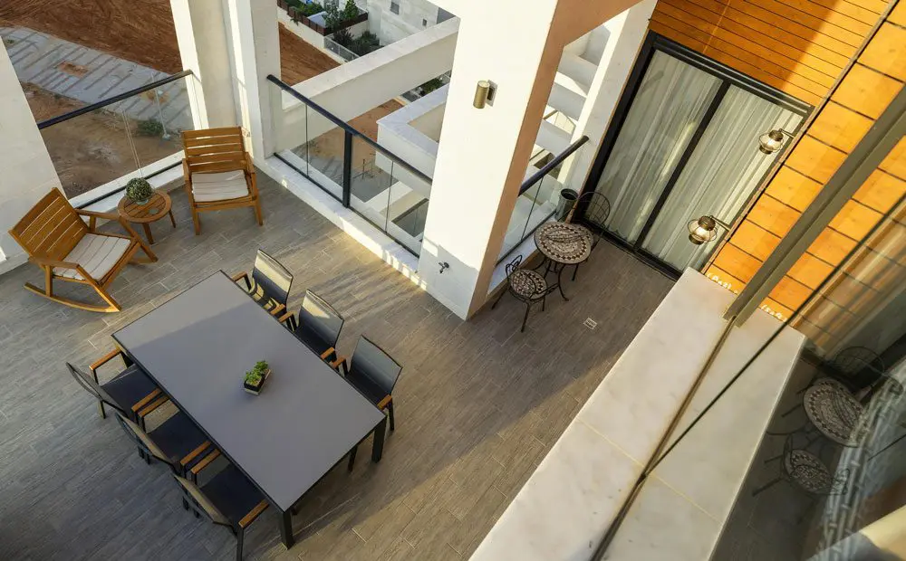 מרפסת עם אזורי ישיבה שונים ומגוונים